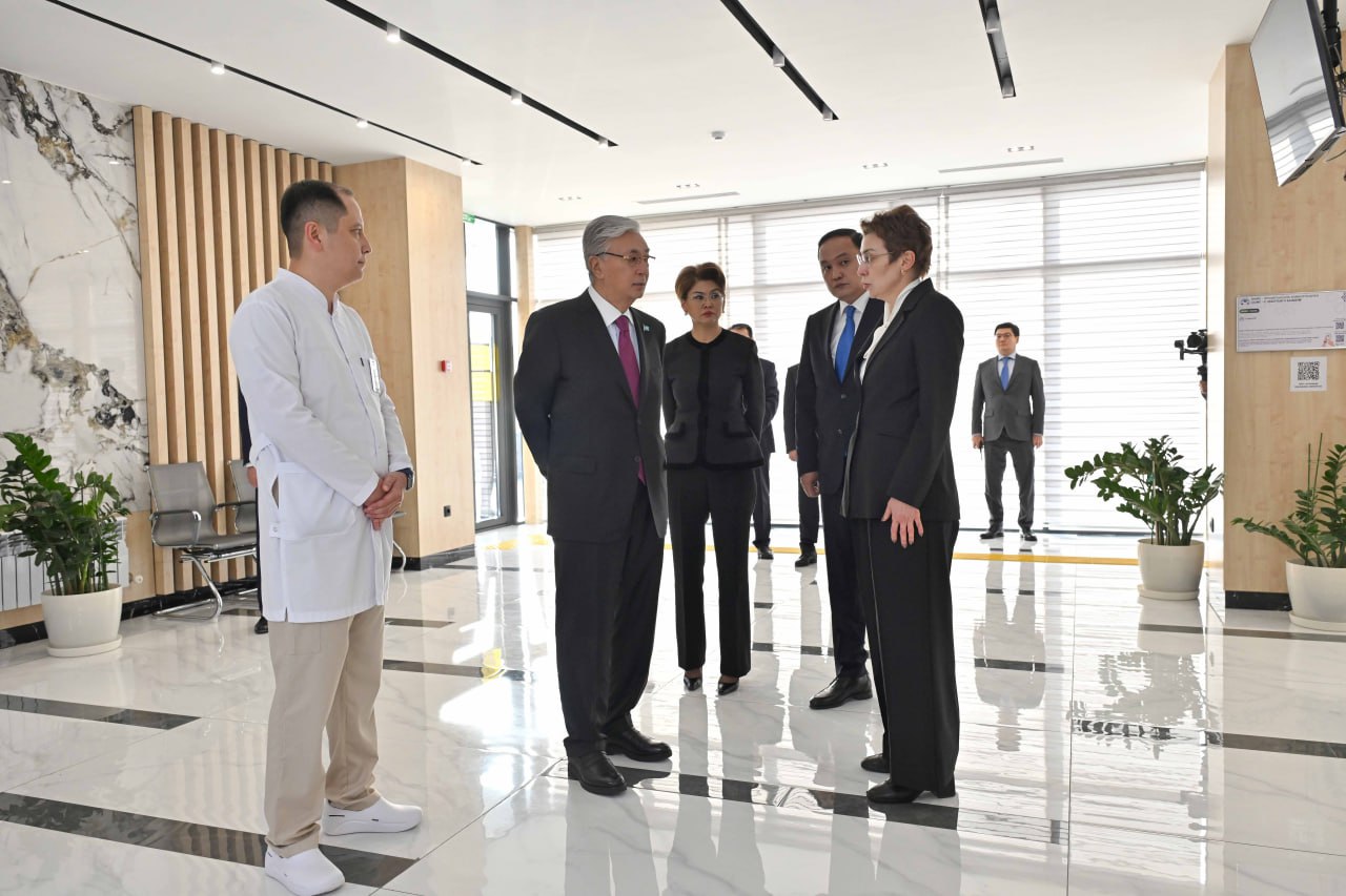 Қасым-Жомарт Тоқаевқа клиниканың кардиологиялық және кардиохирургиялық көмек, соның ішінде жоғары технологиялық араласу арқылы дәрігерлік жәрдемнің толық спектрін көрсете алатыны жөнінде баяндалды.