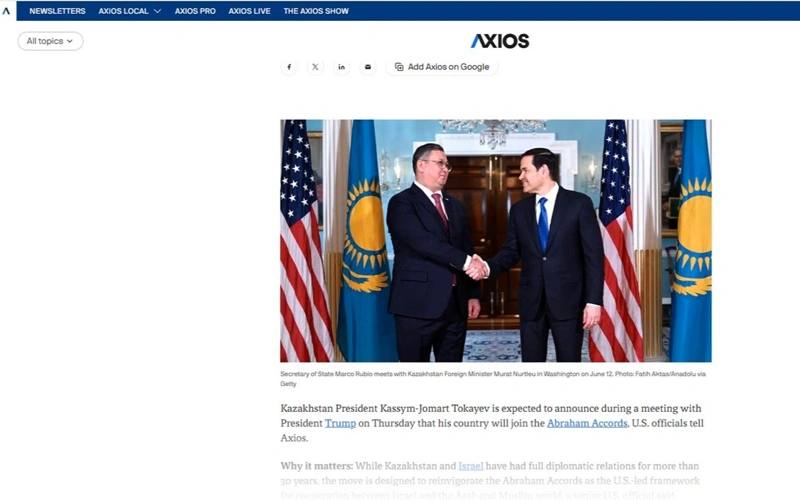 Axios басылымы Қазақстанның Ибраһим келісіміне қосылғаны жайында жазып, аталған клубқа көптеген елдің мүше болуға тырысатындығына назар аудартады, деп жазады inbusiness.kz сайты Қазақпарат агенттігіне сілтеме жасап.