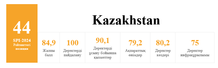 Өткен жылдың деректеріне сәйкес, Қазақстанның ұлттық статистика жүйесі 100 мүмкін балдың 79,8-ін жинады. Жалпы көрсеткіштің өсуіне келесі компоненттердің жақсаруы ықпал етті: "Деректерді пайдалану" – +10, "Дерек көздері" – +10,2, "Деректер инфрақұрылымы" – +10 және "Деректерді ұсыну қызметтері" – +1,1 балл.