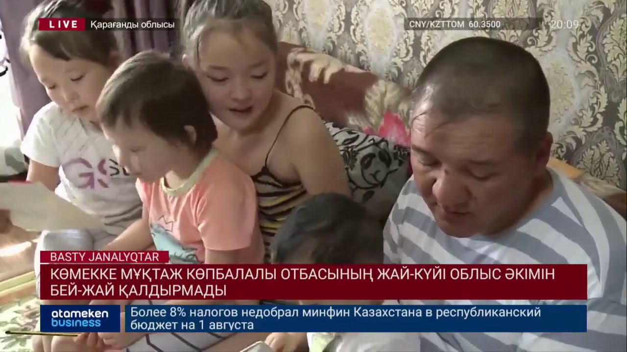 Көмекке мұқтаж көпбалалы отбасының жай-күйі облыс әкімін бей-жай қалдырмады. Біздің арнаның эфирінен шыққан материалды көрген Жеңіс Қасымбек дереу шара қолданды. Атаулы әлеуметтік көмекті алып, артынша сол үшін кінәлі болып шыққан жанұя жайлы Айман Сағатайтың репортажында.