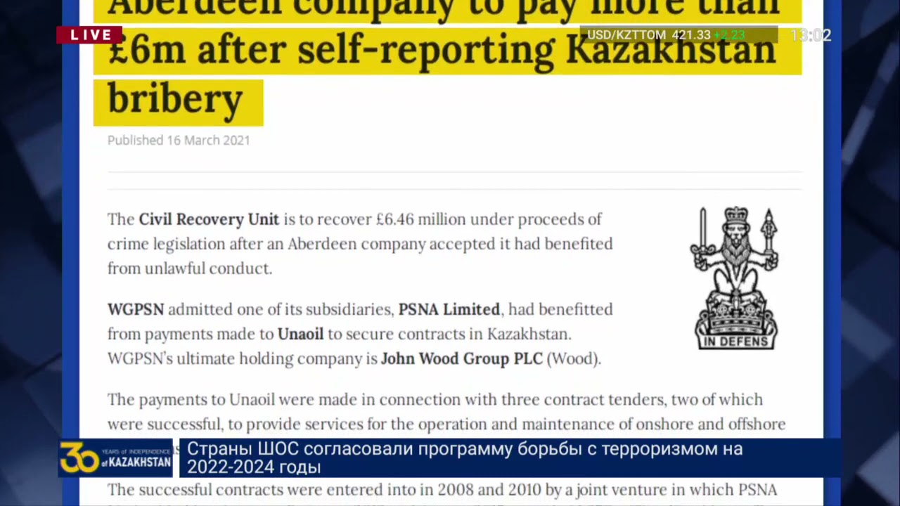 SCOTTISHLEGAL: ШОТЛАНДИЯЛЫҚ КОМПАНИЯ ҚАЗАҚСТАНМЕН МҰНАЙ КЕЛІСІМІН ЖАСАУ ҮШІН ПАРА БЕРГЕНІН МОЙЫНДАДЫ