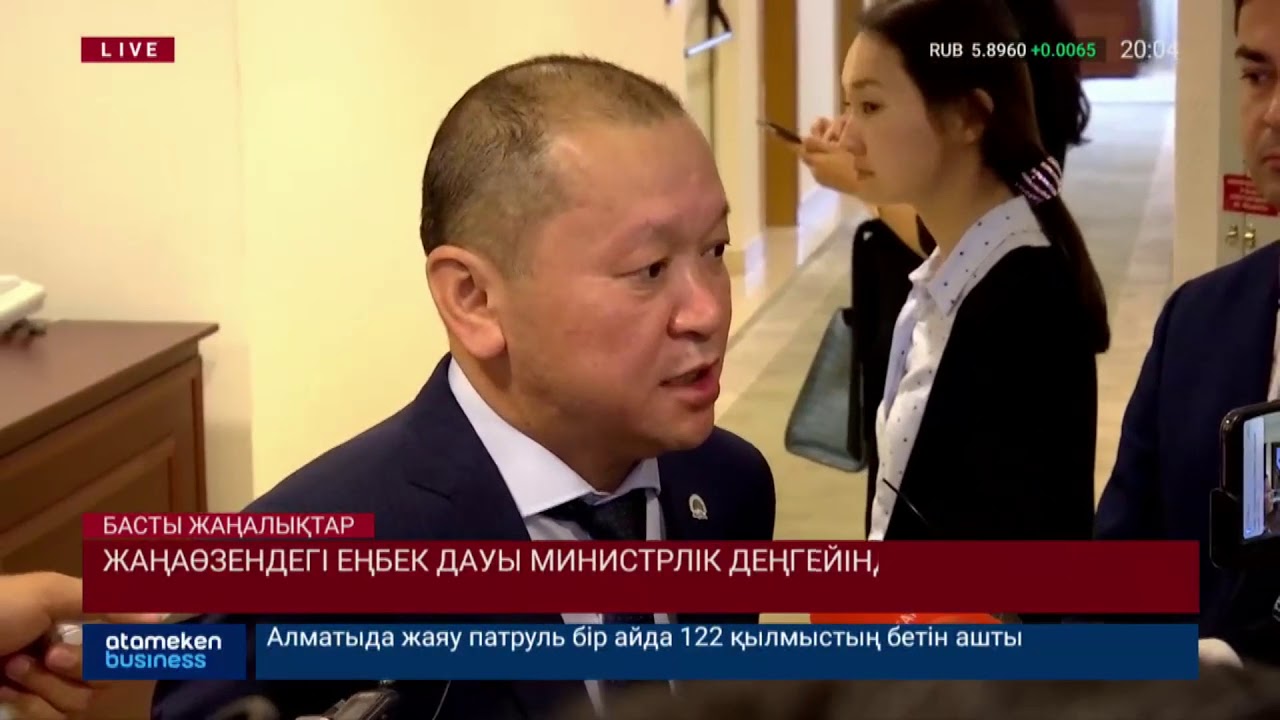 Жаңаөзендегі еңбек дауы енді Үкімет деңгейінде шешілмек. Бүгін Еңбек және халықты әлеуметтік қорғау министрі Біржан Нұрымбетов Маңғыстау өңіріндегі ахуалды реттеуге арнайы инспекторлардың жіберілгенін жеткізді. Бұған дейін мәселені облыс әкімі Серікбай Тұрымов шешуге тырысқан. Бірақ оны тыңдаған жұрт жоқ. 200-ге жуық еңбеккер өткен аптадан бері ереуіл ұйымдастырып жатыр. Талаптары жалақыларының шетелдіктермен теңесіп, кемі 65%-ға дейін өсірілуі. Тақырыпты тілшіміз Құралай Пионер тарқатсын.