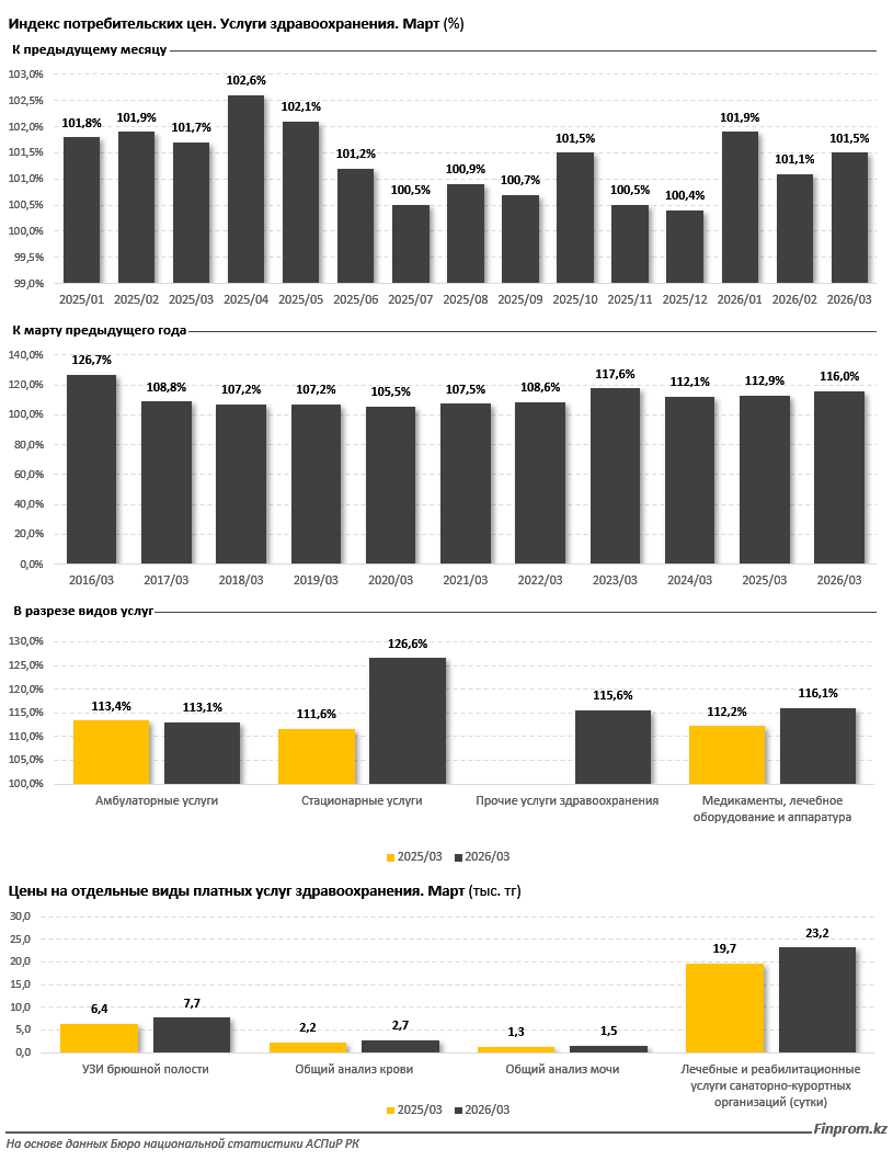 В Казахстане изменилась структура расходов домохозяйств на здравоохранение: в 2025 году приоритет сместился в сторону медицинских услуг. Основным фактором роста остаётся удорожание, особенно в сегменте стационарного лечения, передает inbusiness.kz со ссылкой на finprom.kz.