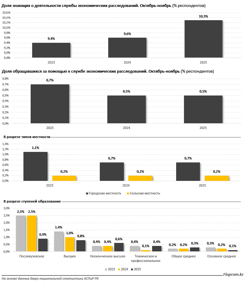 Прослеживается и зависимость от уровня образования: чем выше образование, тем чаще граждане взаимодействуют со службой. Однако даже среди наиболее образованных групп показатели остаются низкими. Так, среди респондентов с послевузовским образованием доля обращавшихся сократилась с 2,5% в 2023–2024 годах до 0,9% в 2025-м. Среди обладателей высшего образования показатель также снизился - с 1,4% до 0,8%.