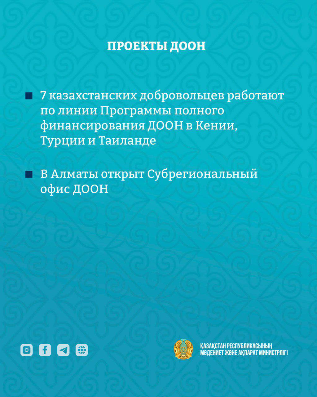 "За последние годы в Казахстане сформирована целостная система государственной поддержки волонтёрства, которая всегда находится в фокусе государственной политики, — подчеркнула министр. — Сегодня в Штаб-квартире ООН в Нью-Йорке будет дан официальный старт Международного года добровольцев во имя устойчивого развития. По этому случаю пройдет специальная сессия Генеральной Ассамблеи, на которой будет озвучено видеообращение президента нашей страны".