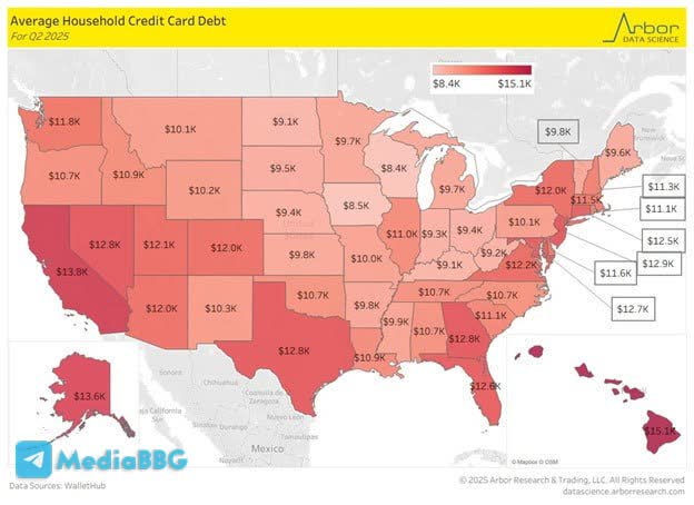 Общий долг домохозяйств США по кредитным картам в августе 2025 года достиг рекордных 1,33 трлн долларов, что отражает растущее финансовое давление на потребителей, передает inbusiness.kz со ссылкой на Bloomberg.