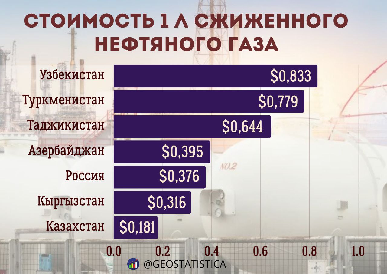 В Казахстане самый дешевый сжиженный газ, передает inbusiness.kz со ссылкой на Геостатистику.