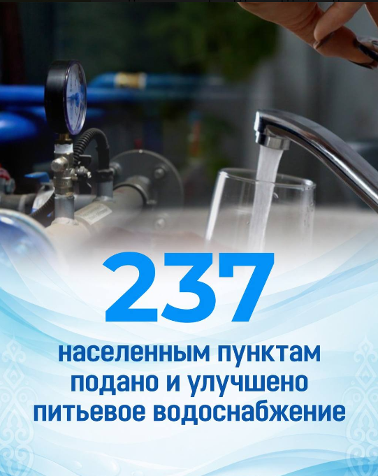 Доступ к качественной питьевой воде улучшен в 237 населённых пунктах. В этом году к водоснабжению подключены 449 тыс. человек, что напрямую влияет на здоровье и комфорт жителей.
