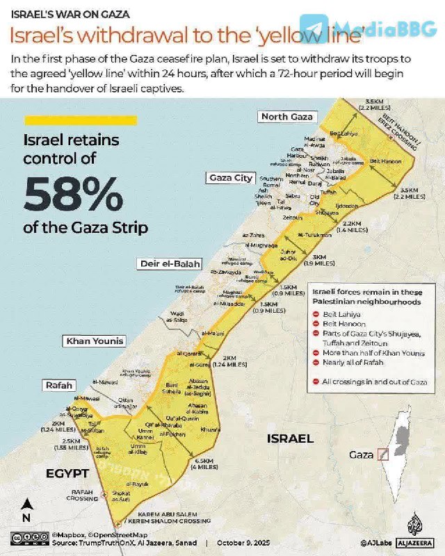 По данным источников, Израиль сохранит контроль над 58% территории сектора, включая Бейт-Лахию, Бейт-Ханун, части города Газа, а также Хан-Юнис и Рафах. Кроме того, под его контролем останутся все пограничные переходы, что фактически обеспечивает военное и экономическое влияние на палестинский анклав.