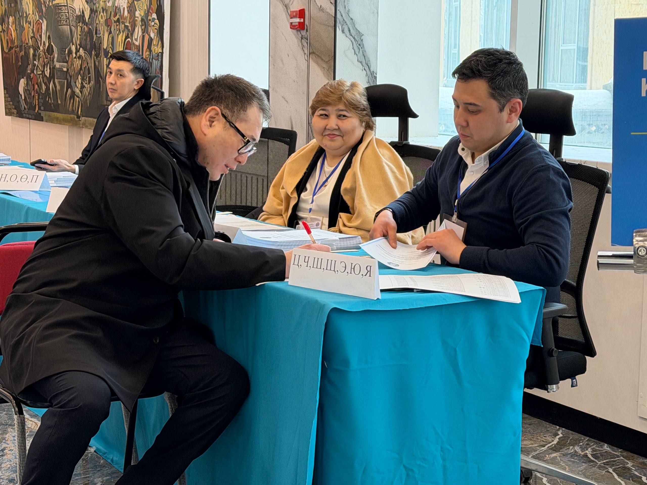 Заместитель премьер-министра - министр национальной экономики Серик Жумангарин и его заместители отдали свои голоса на избирательных участках.