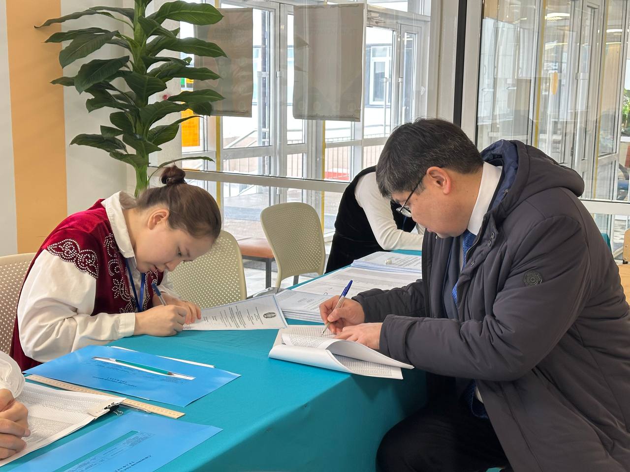 Министр финансов Республики Казахстан Мади Такиев также принял участие в голосовании на республиканском референдуме, посвященном вопросу принятия новой Конституции страны.