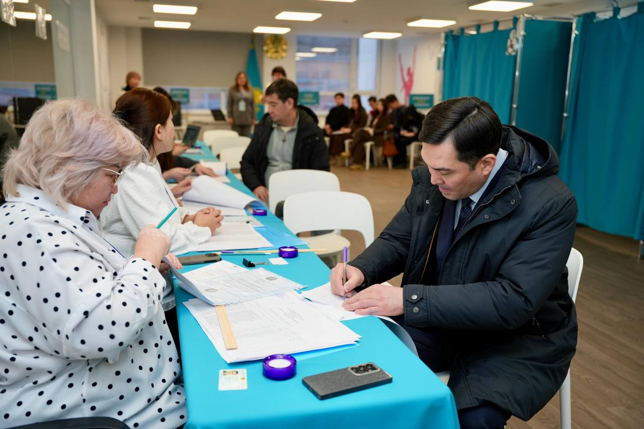 На своем избирательном участке проголосовал министр энергетики Ерлан Аккенженов.