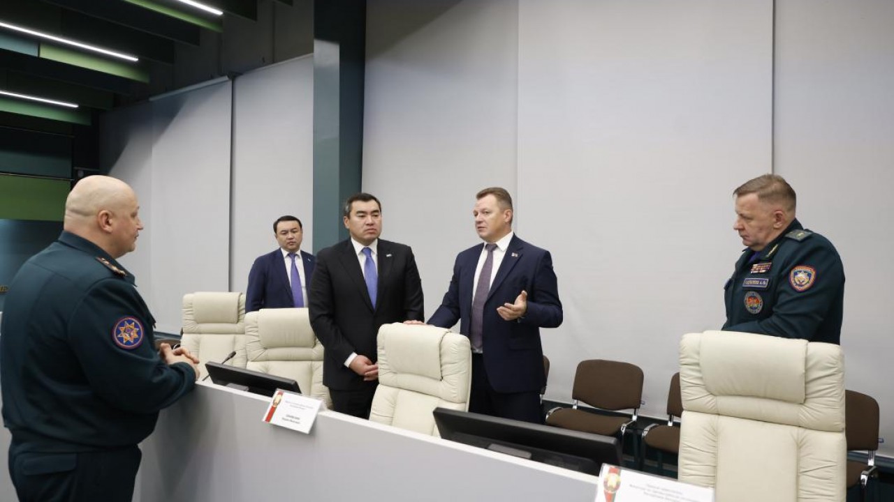 В рамках рабочей поездки казахстанская делегация посетила Республиканский центр управления и реагирования на чрезвычайные ситуации, а также встретилась с казахстанскими курсантами в Университете гражданской защиты МЧС Беларуси.