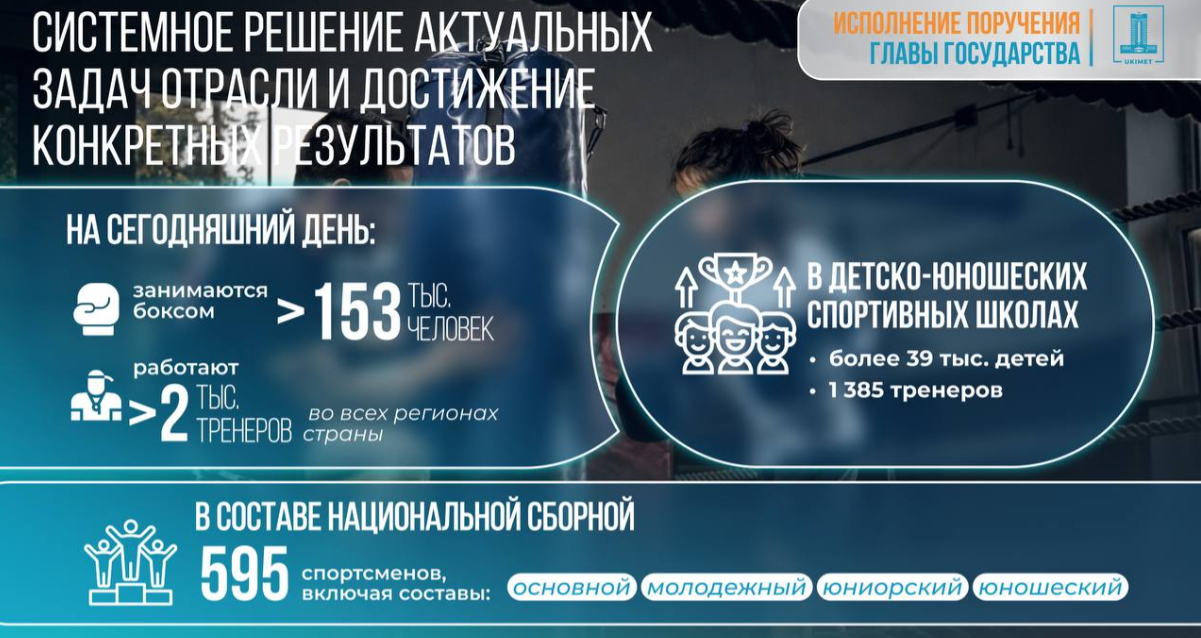 На сегодняшний день в Казахстане боксом занимаются более 153 тыс. человек, с которыми работают свыше 2 тыс. тренеров во всех 20 регионах страны. Это подтверждает высокий интерес к данному виду спорта и наличие прочной базы для дальнейшего роста.