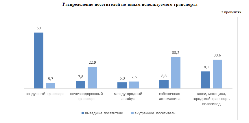 "Основные статьи расходов внутри страны распределились следующим образом: покупка товаров — 25,7 процента, транспортные услуги — 25,5 процента, питание — 20,8 процента и проживание — 12,2 процента", - отметили в ведомстве.