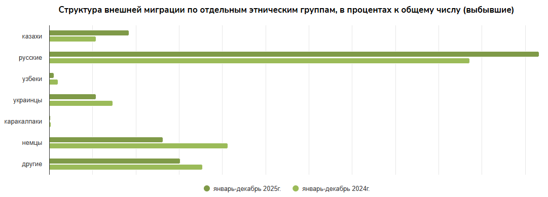 "Основной миграционный обмен страны традиционно приходится на государства СНГ. Доля прибывших из стран СНГ составила 81,8%, а доля выбывших в эти государства — 71,8%. Это подтверждает сохраняющуюся роль постсоветского пространства как ключевого миграционного партнёра Казахстана", - отметили специалисты.