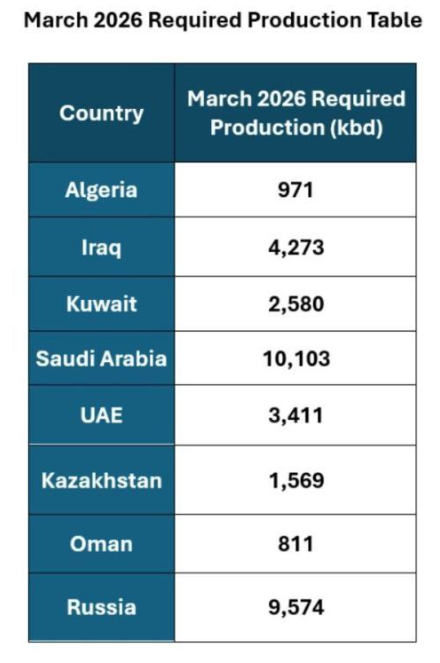Рекомендованные объёмы нефтедобычи для восьми стран-участниц сделки остаются без изменений и соответствуют ранее утверждённым параметрам. Следующая встреча "восьмёрки добровольцев" назначена на 1 марта, где участники вновь оценят состояние рынка и возможные дальнейшие шаги.