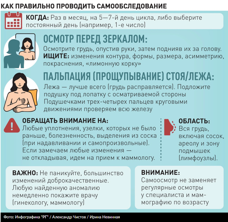 "Наиболее показательный период — с 5-го по 12-й день цикла. Этот простой ритуал помогает вовремя заметить уплотнения".