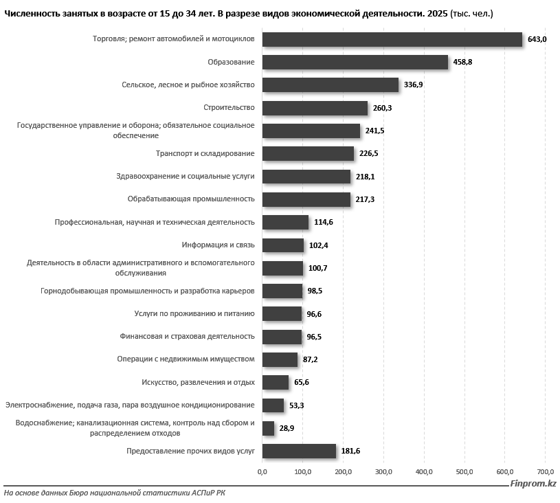 Несмотря на высокий образовательный уровень (1,8 млн молодых людей имеют высшее образование, ещё 1,6 млн - техническое и профессиональное), рынок труда не предлагает достаточного количества рабочих мест по специальности. В результате молодёжь концентрируется в торговле, где заняты 643 тыс. человек, а также в образовании (458,8 тыс.) и сельском хозяйстве (336,9 тыс.).