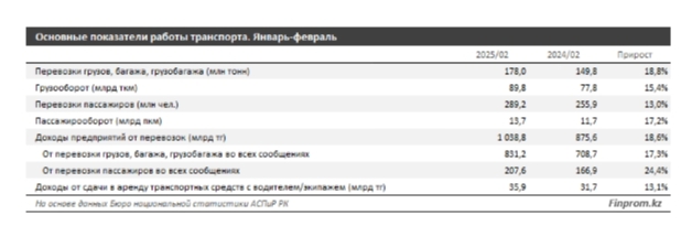 Рост пассажирских перевозок составил 17,2%, грузовых — 18,8%. В то же время, грузооборот увеличился на 15,4%, достигнув 89,8 млрд ткм, а пассажирооборот — на 17,2%, до 13,7 млрд пкм.
