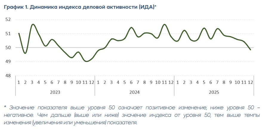 "По итогам декабря индекс деловой активности снизился и составил 49,9, что соответствует нейтральной динамике и находится около порогового уровня. В ноябре показатель был выше, однако декабрьские данные указывают на осторожность бизнеса и замедление деловой активности в ряде отраслей", - отметил Рустем Оразалин.