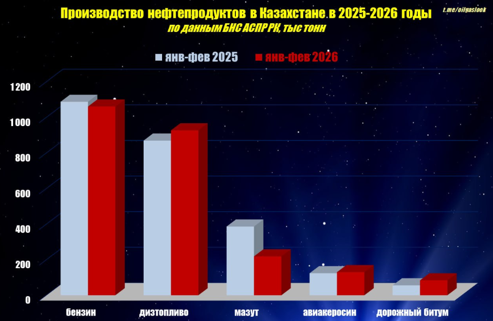 Производство нефтепродуктов в Казахстане в январе-феврале 2026 года составило:
