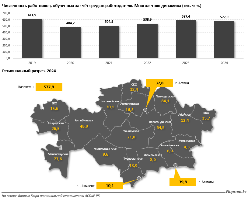 Самые низкие показатели отмечены в регионах с менее развитой экономикой: Жетысуской, Жамбылской и Алматинской областях. Несмотря на снижение общего числа, эксперты отмечают, что роль работодателей в подготовке кадров продолжает расти, а инвестиции в обучение становятся важной частью корпоративной стратегии.