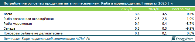 По данным Еnergyprom.kz, расходы домашних хозяйств на рыбу и морепродукты во втором квартале текущего года составили 20,3 тыс. тг — на 8,4% больше, чем в аналогичном периоде 2024-го.