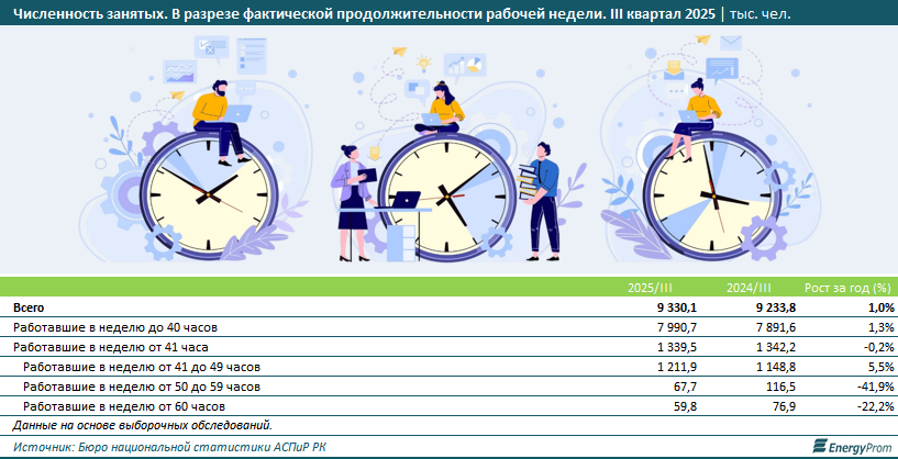 Данные отчётов БНС за прошлый год показали, что проблема чрезмерной рабочей нагрузки для части занятого населения РК сохраняется.