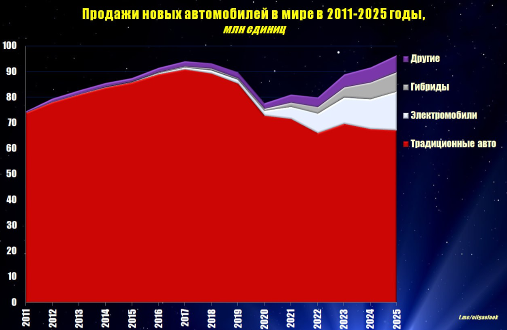 Мировой автомобильный рынок в 2025 году продемонстрировал уверенный рост: по первым оценкам, продажи новых автомобилей превысили 96 млн единиц. Этот показатель стал важной вехой для отрасли, которая в последние годы переживала серьезные колебания из-за пандемии, перебоев в цепочках поставок и изменений в потребительском спросе, передает inbusiness.kz со ссылкой на телеграм-канал OilGazLook.