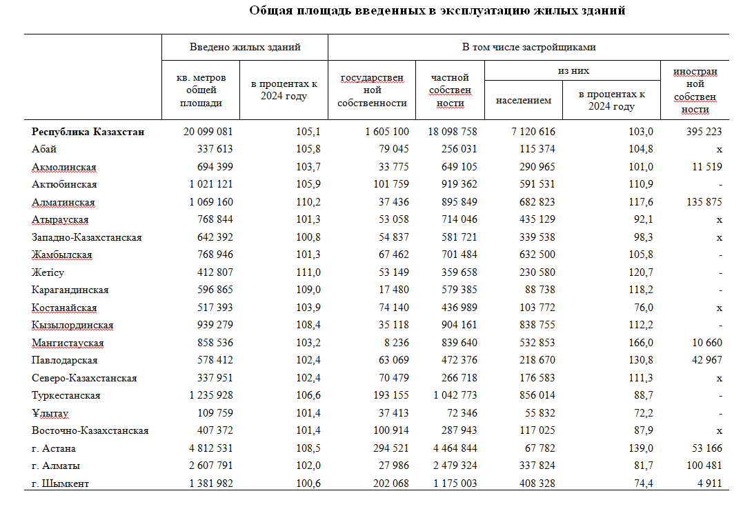 В целом объем строительных работ за 2025 год в Казахстане вырос на 15,9% и составил 10 704,8 млрд тенге.