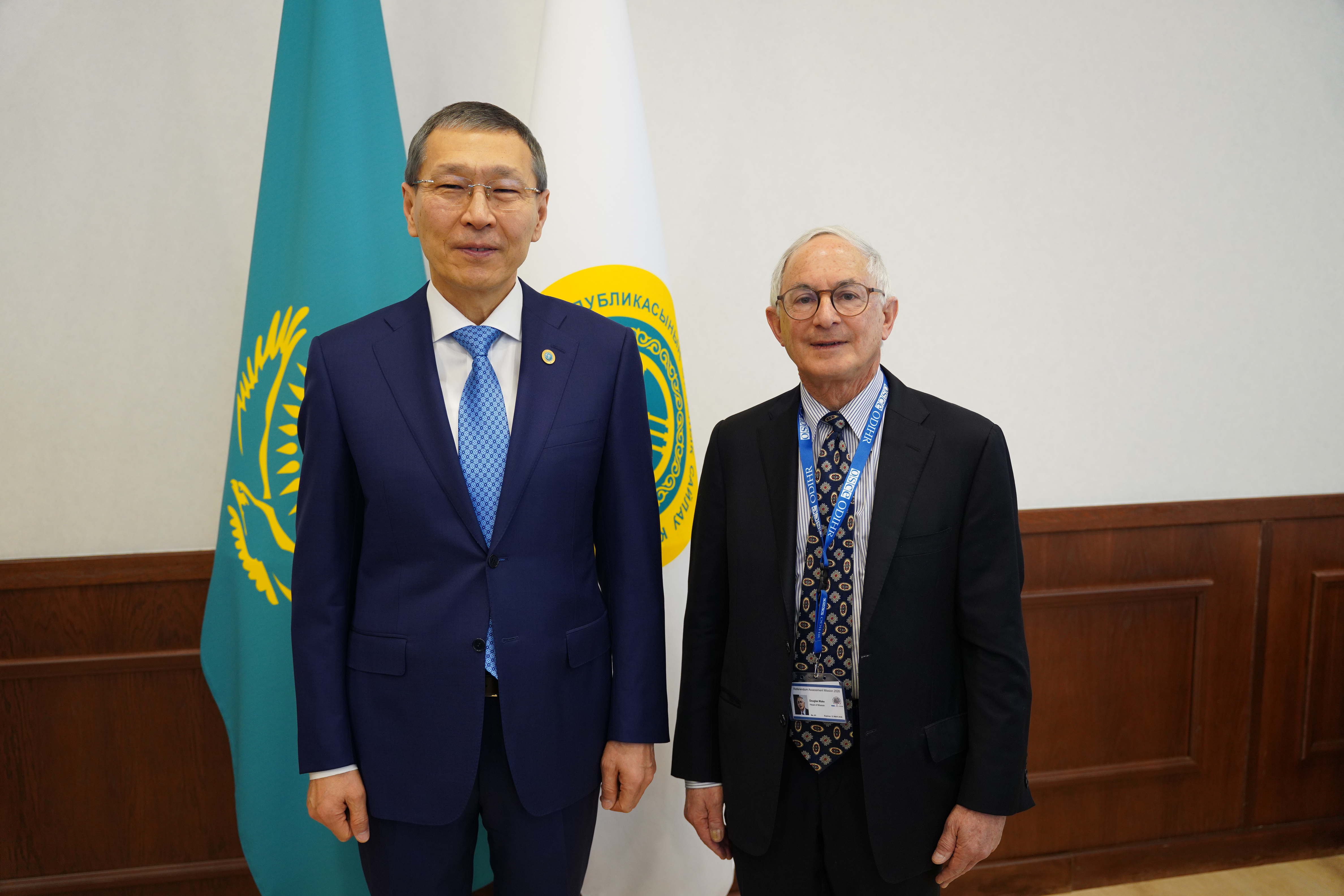 3 марта состоялась встреча председателя Центральной комиссии референдума Нурлана Абдирова с главой миссии по оценке референдума БДИПЧ/ОБСЕ Дугласом Брюсом Уэйком, передает inbusiness.kz.