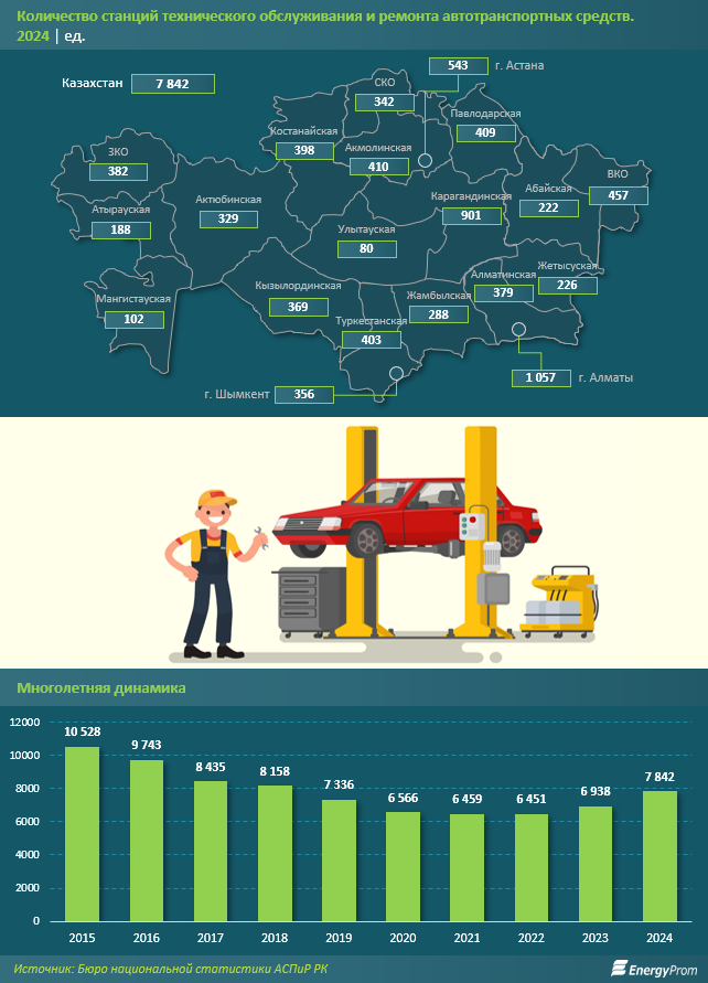 Количество станций технического обслуживания и ремонта автотранспортных средств растёт второй год подряд, сообщает inbusiness.kz со ссылкой на Еnergyprom.kz.