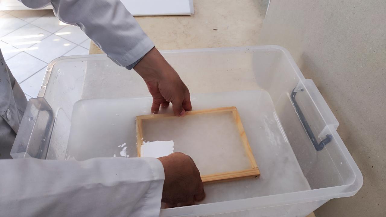 "Технология основана на традициях XIII–XIV веков, когда подобный способ применялся мастерами Европы и Азии. Бумажная масса из волокон хлопка, льна, конопли или целлюлозы тщательно измельчается и превращается в однородную пульпу. Затем она равномерно распределяется по специальной форме, лишняя влага удаляется фильтрацией, после чего листы прессуются и сушатся естественным образом", - разъяснили этапы технологического процесса в министерстве.