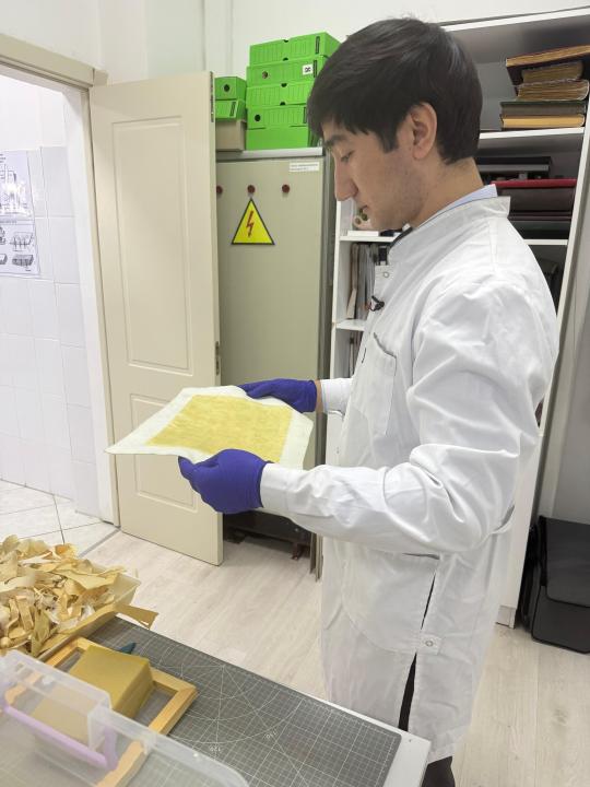 "Впервые в Казахстане специалисты Национального центра рукописей и редких книг приступили к использованию метода ручного литья бумаги для реставрации старинных изданий. Этот способ дает возможность создавать материал, максимально близкий по составу и структуре к оригиналу, что особенно важно при восстановлении утраченных страниц и фрагментов древних рукописей", - сообщили в минкульте Казахстана.