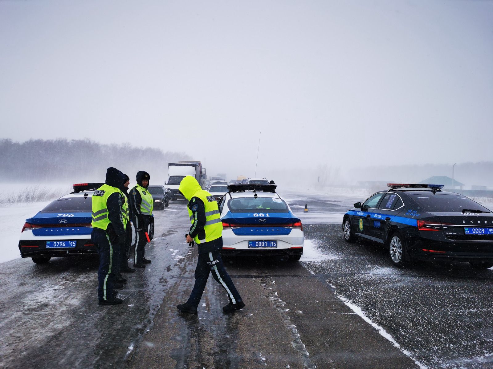 По данным департамента полиции, только в пригороде Петропавловска на данный момент скопилось около двухсот автомобилей, ожидающих открытия трасс, преимущественно в сторону Астаны и Жезказгана.