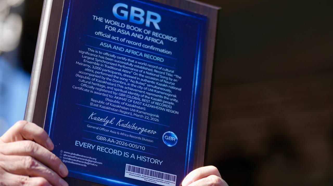 Участвовал в этом зрелищном исполнении и аким региона Нурымбет Сактаганов. Сегодняшнее достижение официально внесено в Книгу рекордов Гиннесса, а сертификат, подтверждающий мировой рекорд, в торжественной обстановке вручили руководителю области.