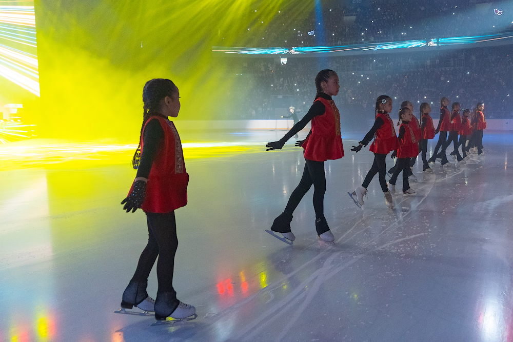 Но первыми поздравить чемпиона и участников Игр на лед вышли юные фигуристы и гимнасты, исполнив для гостей торжества красивый номер, вызвавший восторг у зрителей.