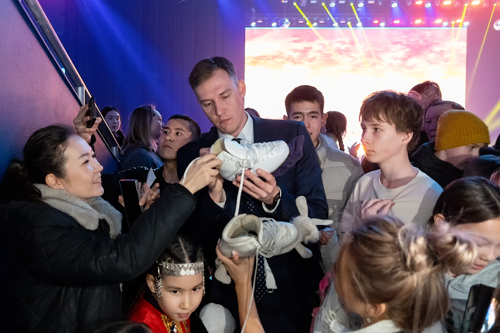 "Ваша невероятная поддержка замотивировала меня во время исполнения произвольной программы. Это было невероятно. Всем – огромный рахмет!", - обратился к собравшимся олимпийский чемпион Михаил Шайдоров.