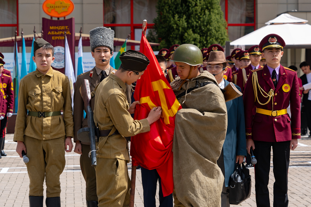 Ученики лицея подготовили для гостей мероприятия настоящий концерт, который начался с повествования о подвигах казахстанцев в годы Великой Отечественной войны.