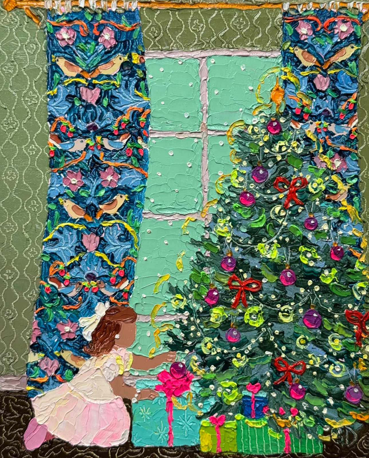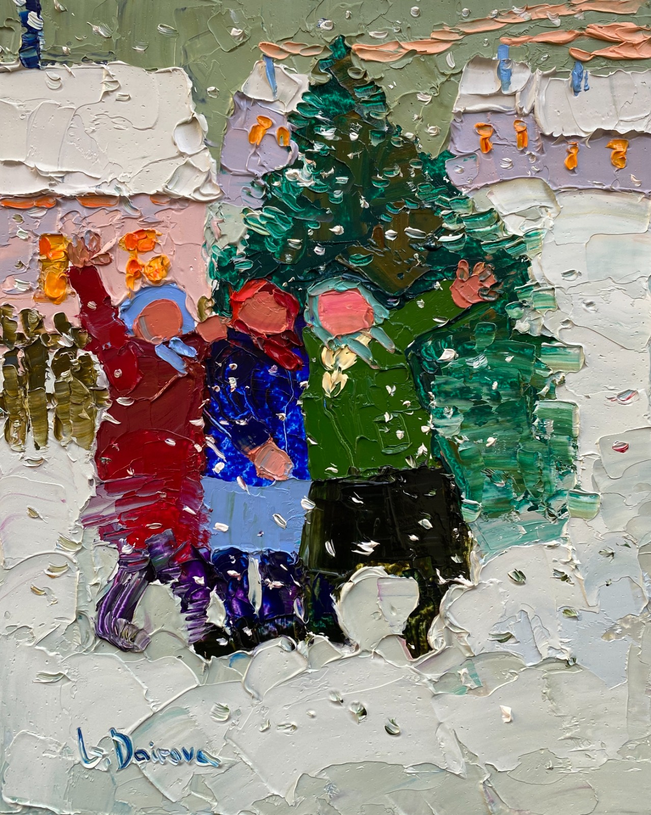 Её авторская серия "Фотокарточка на память" родилась в 2020 году, в период внутреннего поиска и потребности в эмоциях. Её новогодние миниатюры – это семейные встречи, дети у ёлки, дружеские посиделки за чаем и тёплые разговоры, написанные маслом на холсте.