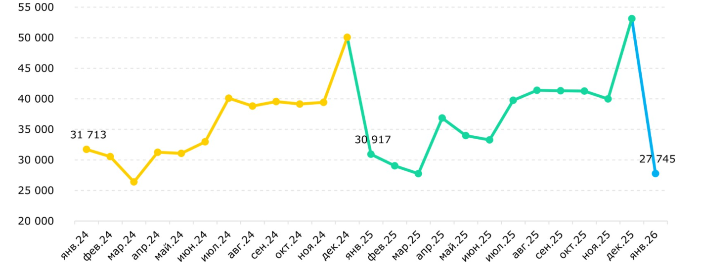 Динамика количества сделок купли-продажи за 2024-2026 годы. Бюро национальной статистики, 2026 г.