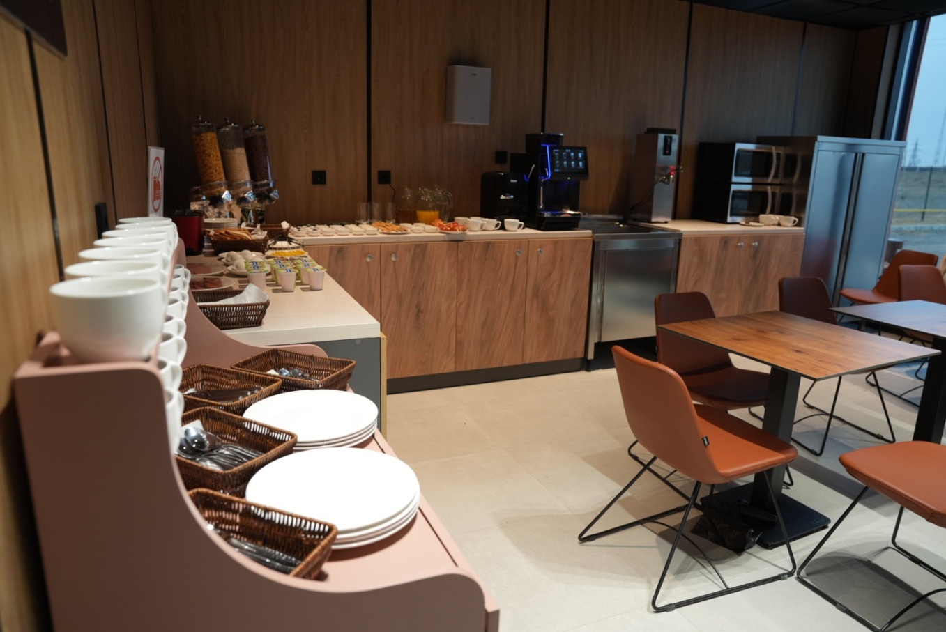 Новый отель строится вокруг концепции сервисного хаба. В одном пространстве сосредоточены АЗС, магазин Dala Market и Q-Café, охраняемая парковка для легковых и грузовых автомобилей, а также станции зарядки электромобилей. Для гостя это значит, что все нужные задачи можно решить за одну остановку: заправить машину, пообедать, принять душ и отдохнуть.