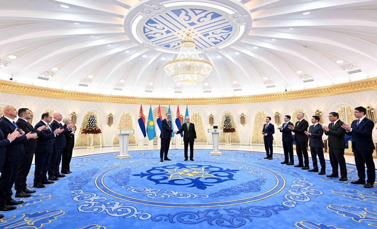 За значительный вклад в упрочение связей между двумя странами Касым-Жомарт Токаев вручил Александру Вучичу высшую государственную награду Республики Казахстан – орден "Алтын Қыран".
