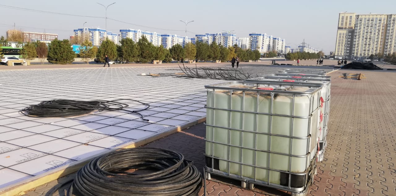 Ержан Мухиддин раскрыл ключевые этапы монтажа, основанные на создании искусственного холода. Сначала площадка гидроизолируется, затем укладывается теплоизоляционный пеноплекс, который не дает холоду уходить вниз. Уже на него укладывается арматурный каркас для фиксации холодильных труб. В контуре циркулирует этиленгликоль — незамерзающая жидкость, охлаждаемая чиллером.