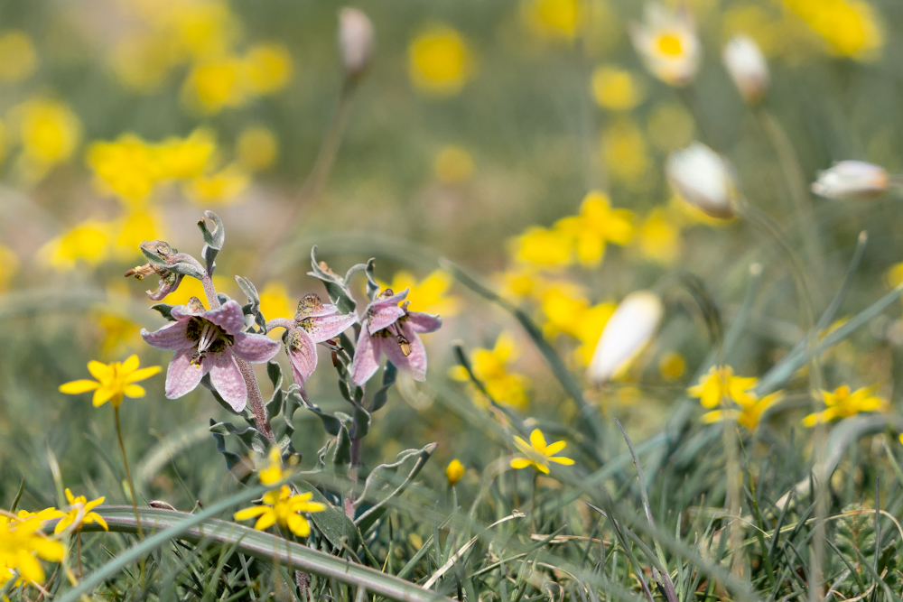Между соцветиями тюльпанов и гусиного лука иногда попадались цветы рябчика. Мелкие, но если приглядеться, очень красивые и необычные.