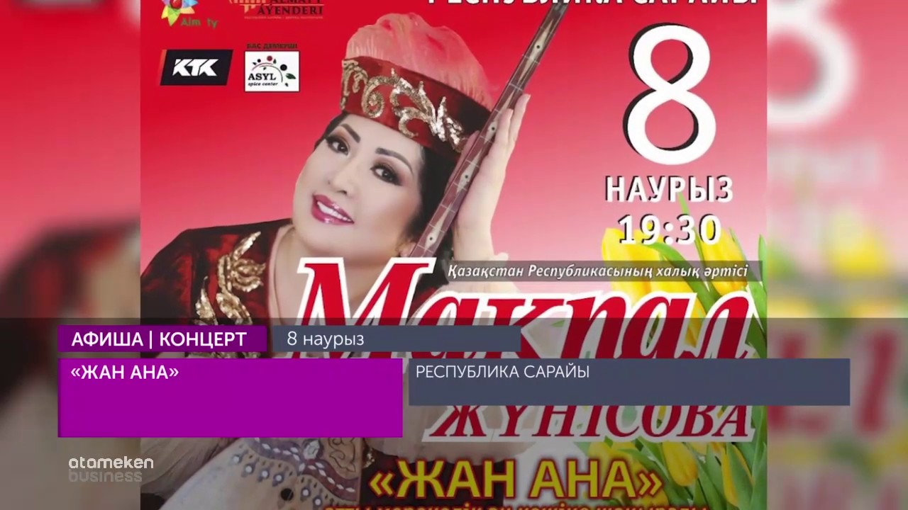 1) Балет - Лебединое озеро; 2) Театр - Ромео и Джульетта; 3) Балет - In the Middle, Somewhat Elevated; 4) Концерт - Мақпал Жүнісова "Жан ана"; 5) Театр - Qupia.