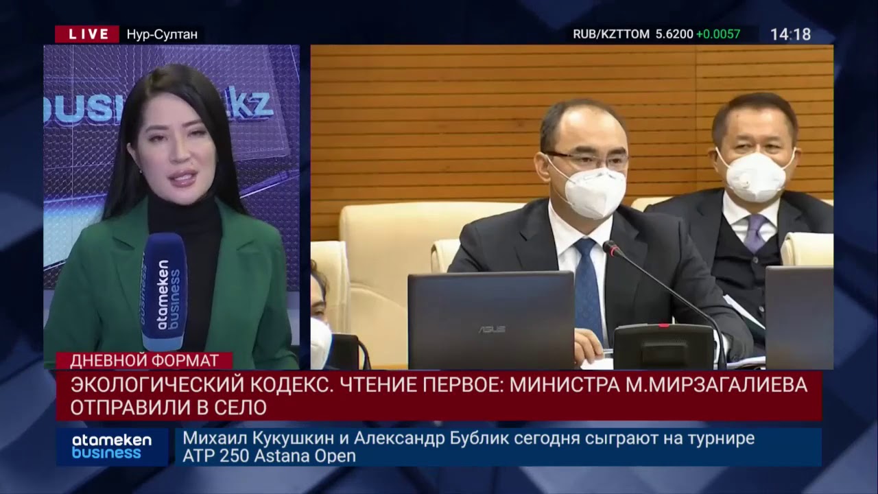 «Съездите в село после принятия кодекса». Такую рекомендацию от спикера Мажилиса сегодня получил глава минэкологии Магзум Мирзагалиев, когда представлял в палате в первом чтении проект нового Экологического кодекса. Норму о декларировании животных, как загрязнителей окружающей среды, не смог внятно аргументировать и вице-министр сельского хозяйства Руслан Манатаев, который, по его собственному же признанию, пришел в ведомство из айти сферы с дипломом экономиста-международника. На это Нурлан Нигматулин заметил – цитата: «Ну, все понятно. Будучи международником. Откуда ему знать, где коровы, где лошади, где курицы». Конец цитаты. Сейчас на связь со студией выходит моя коллега Молдир Абдуалиева. Она и следила за ходом дискуссии, вызывающей вопросы.