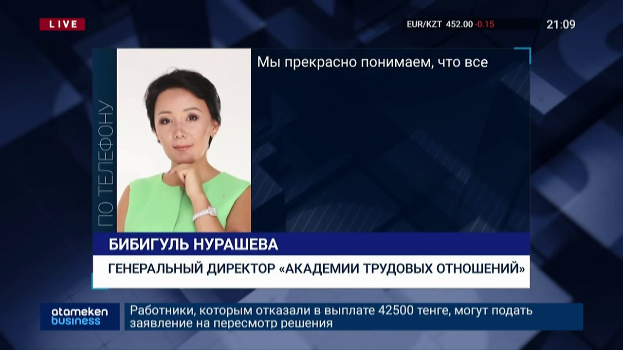 Между тем, эксперты уверены, что если работодателей обяжут выплачивать ставшие уже притчей во языцех сорок две пятьсот, это приведет к массовым увольнениям в казахстанских компаниях. Таким мнением с Atameken Business поделилась эксперт по трудовым отношениям Бибигуль Нурашева. В частности, больше всего пострадает бизнес, который из-за пандемии простаивал около двух месяцев.