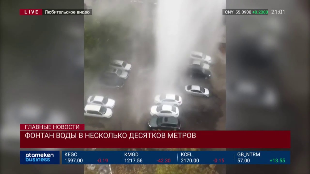 В Алматы вновь прорвало трубу. ЧП произошло в районе ТРЦ «Максима». На кадрах любительской съемки, которая распространяется в интернете, видно, что фонтан воды бьет на высоту в несколько десятков метров.